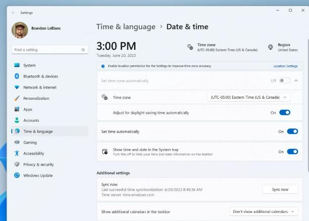 我们还在通过 “设置”>“时间和语言”>“日期和时间”更改时区时改善了用户体验。