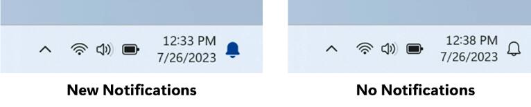 通知现在将在系统托盘中显示为铃声,当新通知到达时,铃声将根据您的系统强调色着色。当没有通知且时钟可见时,铃声将为空。不再显示通知计数。